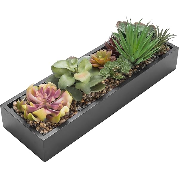 Amazon Com Mygift Artificial Succulent Centerpiece 15 75 Inch Faux Succulents Arrangement Plants In Sleek Black Wooden Rectangular Planter Box Home Kitchen